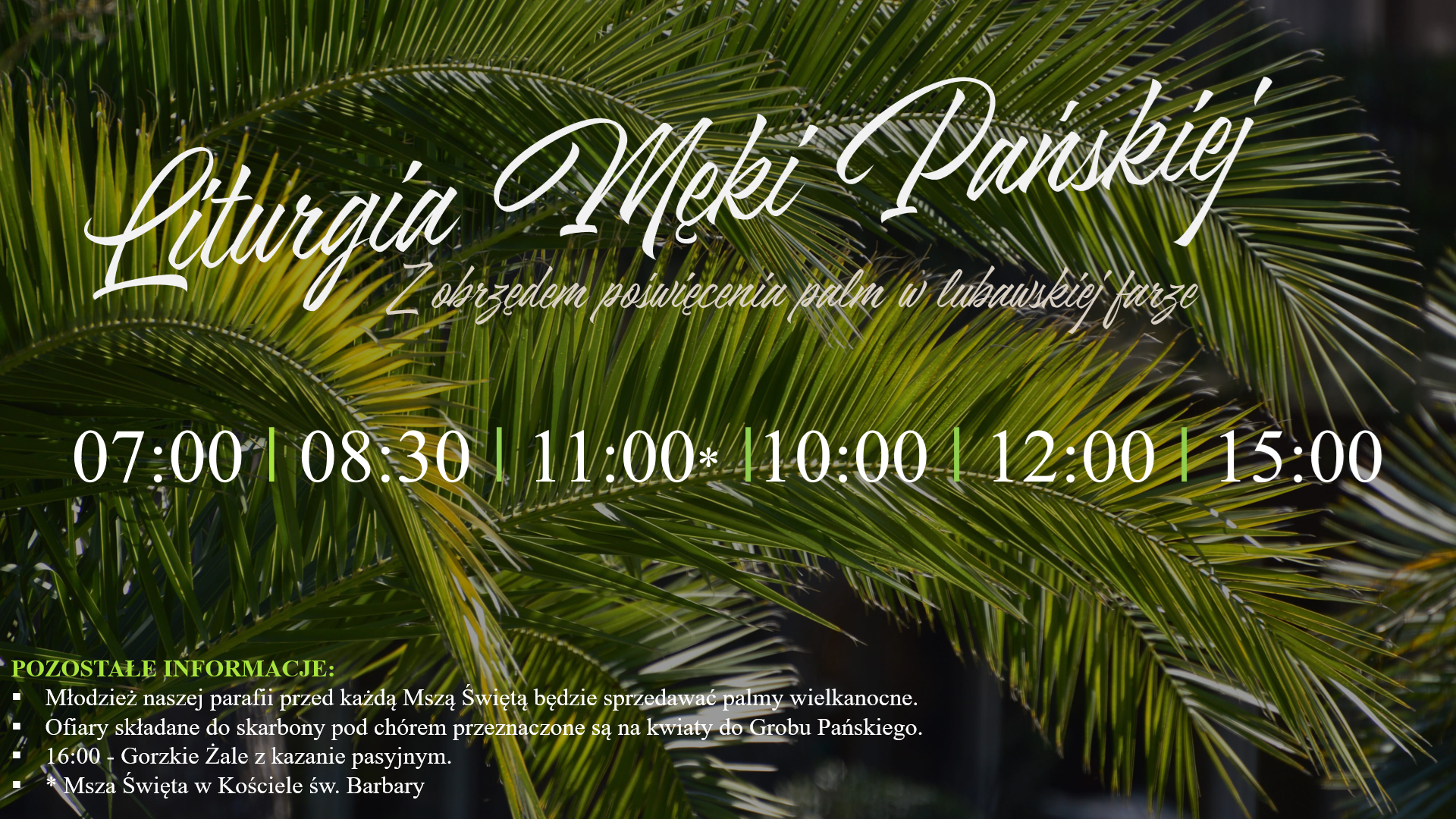 FARA: 07:00 | 08:30 | 10:00 – SUMA | 12:00 – Z UDZIAŁEM DZIECI | 15:00